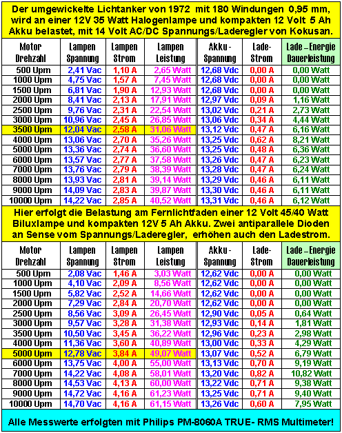 und diese für 12 Volt 13 Watt bei ungefähr 4500 Upm angepasst.